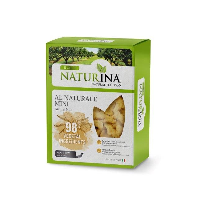 Naturina Adult natural Mini Cookies are very tasty and digestible. They are produced exclusively with premium natural ingredients and are a daily tasty treat for your 4-legged friend. Bone shaped cookies are suitable for dogs of small size. The exclusive use of vegetable ingredients without animal by-products makes them particularly suitable for dogs with food hypersensitivity reactions to meat, fish or animal fats. The homemade production, performed with a technical process called "drawing", gives the product a peculiar consistency and coarseness. If used daily, the product helps maintain oral hygiene, reduces tartar formation and fights bad breath. Moreover, the supplementary fiber intake in addition to the traditional meal makes the cookies a digestive aid as it improves the gastrointestinal tract transit.