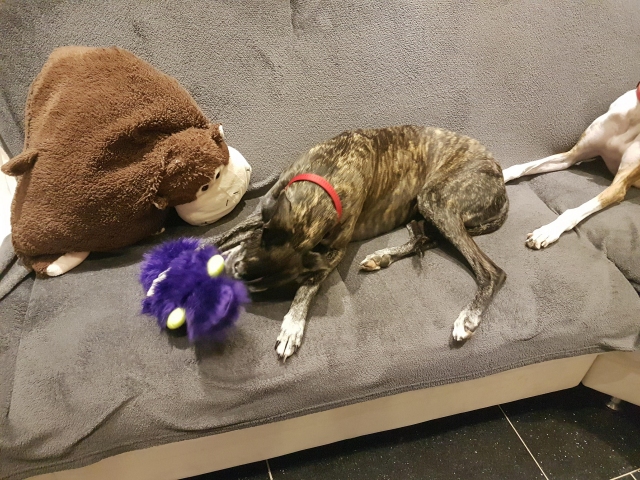 Za posvojeni hrtici Illy in Joy so rekli lastniki, da se ne igrata kaj preveč. Vse dokler... dokler nista prejeli za praznike igračo Rowdie, s katero je igra še kako zabavna. Uživata tudi v novi postelji Bedzy Ox.
