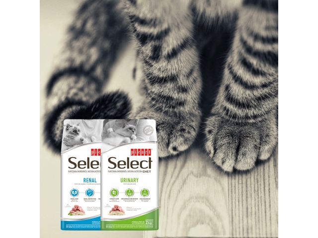 Picart Select Cat Diet Renal za mačke je popolna in uravnotežena suha hrana, narejena iz sestavin naravnega izvora ter dodanih vitaminov in mineralov, indicirana za pomoč pri delovanju ledvic v primeru kronične odpovedi ledvic, za vse pasme in v vseh vitalnih fazah. Deluje tudi kot podpora za zmanjšanje tvorbe oksalatnih kamnov, ki so zelo pogosti pri mačkah, kot so struvitni kamni. Za pravilno zdravljenje oksalatnih kamnov je zelo priporočljiva dosledna prehrana, saj poleg drugih dejavnikov prekomerna telesna teža in sedeč način življenja pri mačkah vplivata na nastanek teh težav.