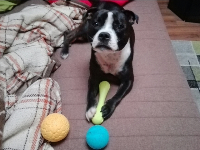 Tank je stafforshirski bull terrier, ki naravnost obožuje igrače Zogoflex in ZogoflexAir. Lastnica ponosno sporoča, da je po letu dni žogica Jive še vedno v odličnem stanju.